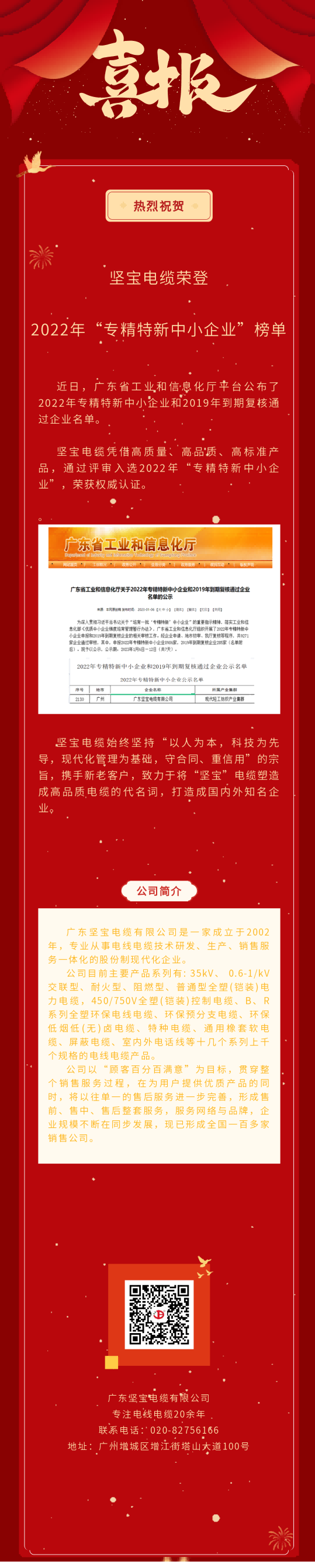 近日,廣東省工業(yè)和信息化廳平臺公布了2022年專(zhuān)精特新中小企業(yè)通過(guò)企業(yè)名單。堅寶電纜憑借高質(zhì)量、高品質(zhì)、高標準產(chǎn)品,榮獲權威認證。